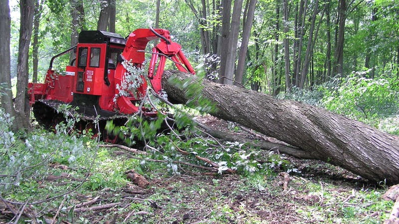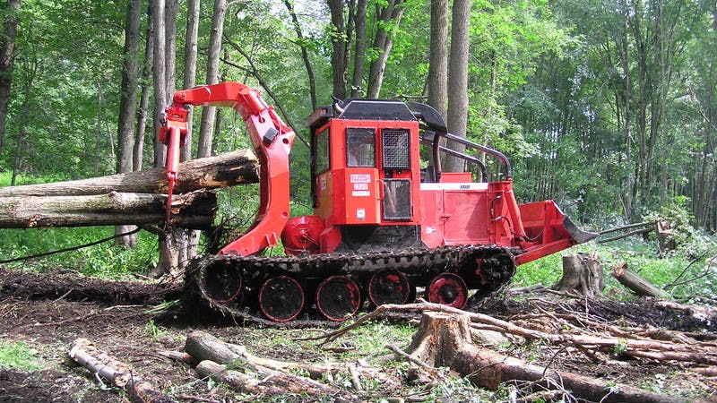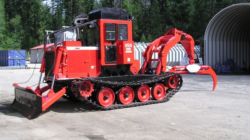 This high performance logging grapple quickly picks up the load for a rapid haul.